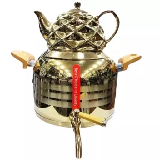 سماور روگازی طلایی کف چدن همراه با قوری ست بسیار زیبا