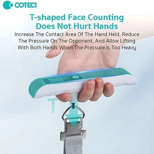 دستهی T شکل این ترازو قابل حمل، نهتنها ظاهر مدرنتری به آن داده، بلکه در عمل نیز کارآمدتر است. این طراحی موجب توزیع بهتر فشار روی دست شده و از خستگی هنگام بلند کردن چمدانهای سنگین جلوگیری میکند. وقتی بار خیلی سنگین است، میتوانید ترازو را با هر دو دست نگه دارید. سطح تماس وسیعتری هم با بار ایجاد میشود که باعث کنترل بهتر در حین اندازهگیری خواهد شد.