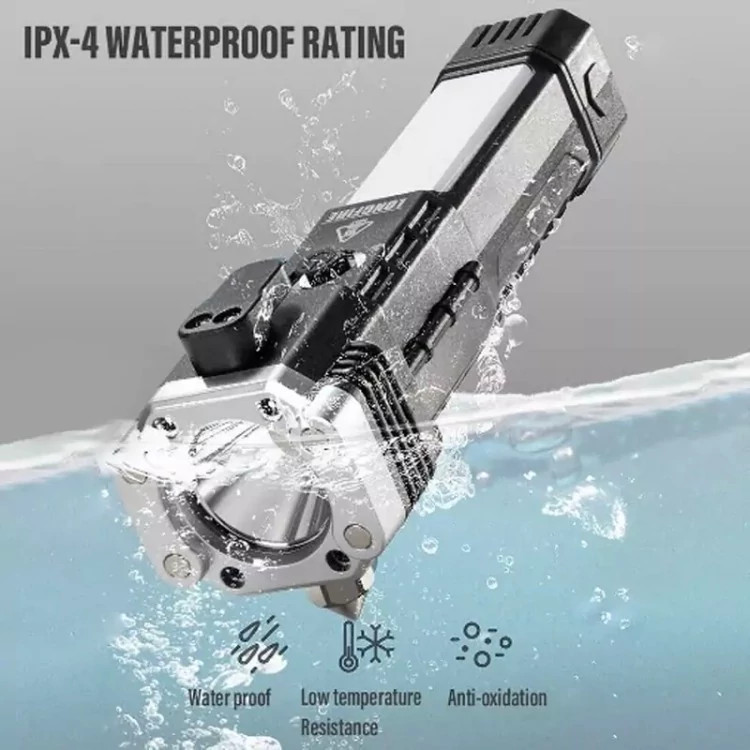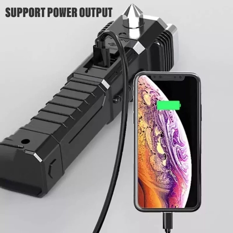 چراغ قوه دستی 8 کاره مدل led torch با قابلیت انجام کارهای فراوان از جمله 3 حالت نور- دارای چکش اتش نشانی-دارای تیغ مخفی برای بریدن کش و طناب.دارای مگنت اهن ربا برای چسبیدن به اهن و تعمیر خودرو- قابلیت استفاده بعنوان پاور بانک در مواقع اضطراری-قابلیت شارژ شدن توسط شارژر موبایل میباشد. این چراغ قوه پر کاربرد وسیله ای عالی برای مسافرت و کمپینگ و نگهداری در خودرو است و داشتن ان میتواند بسیار به شما کمک کند.