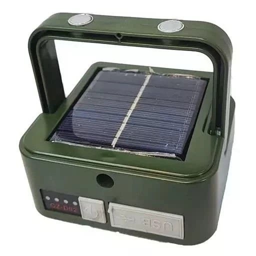 چراغ خورشیدی دستی و پاوربانک دار دارای 4 لامپ SMD و نوردهی خوبی دارد.