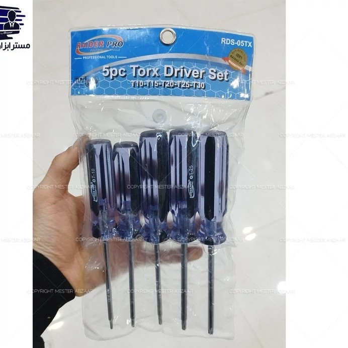 ست پیچ گوشتی ستاره ای 5 عددی برند رایدر پرو دسته شیشه ای مدل RAIDER PRO RDS-05TX