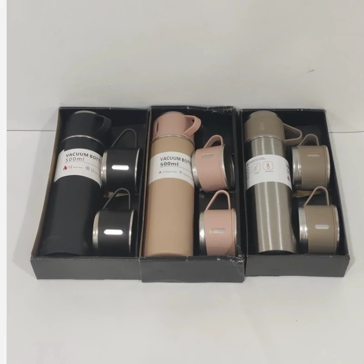 فلاسک مدل کادویی VACUUM FLASK SET گنجایش 0.5 لیتر به همراه 3 لیوان