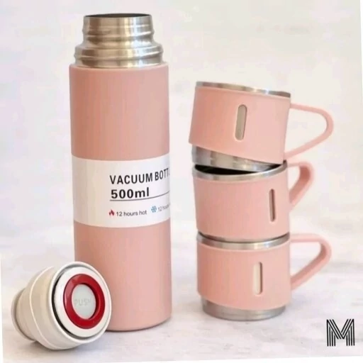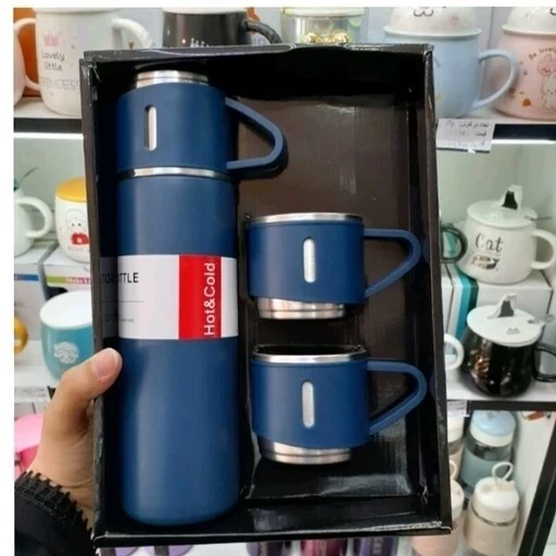 فلاسک مدل کادویی VACUUM FLASK SET گنجایش 0.5 لیتر به همراه 3 لیوان