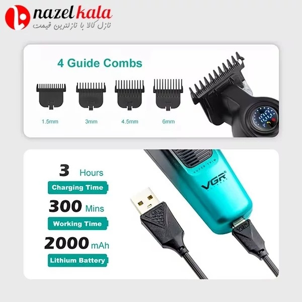 همراه با 4 عدد شانه (1.5، 3، 4.5 و 6 میلیمتر)
