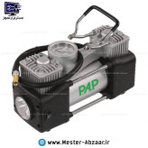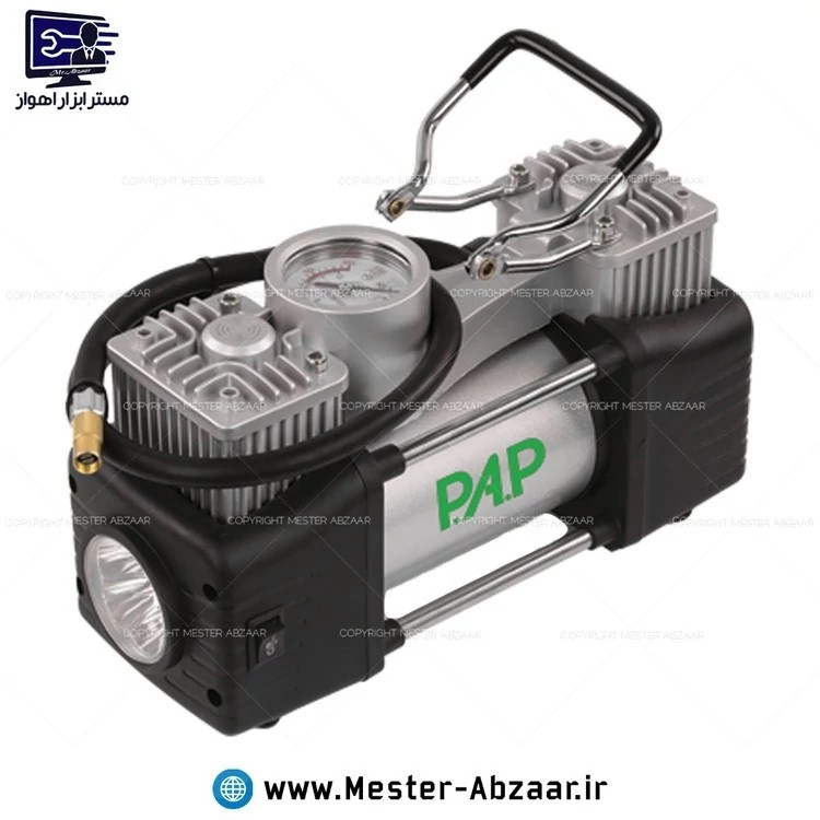 پمپ باد فندکی ماشین قابلیت اتصال به برق شهری قابل انتخاب دو سیلندر برند پی ای پی PAP مدل P.A.P AC-1502 با لوا