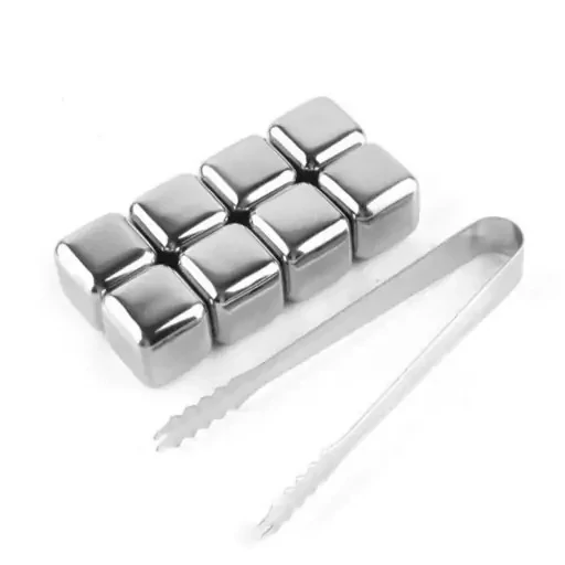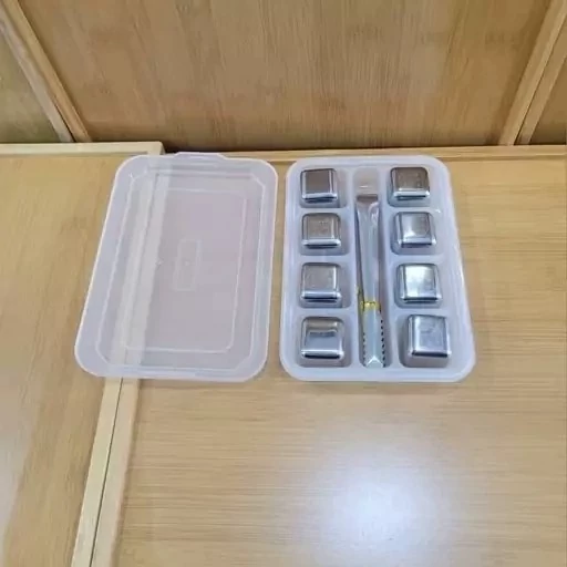 قالب یخ استیل خنک کننده نوشیدنی ضدزنگ و دارای ماده مخصوص خنک کننده 8 عددی با انبر مخصوص یخ فلزی دائمی کد ۸۲۲۰