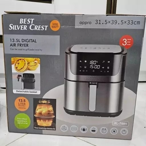 سرخ کن رژیمی سیلور کرست دو المنت اصلی سه شاخ ارسال رایگان با طراحی زیبا و ظرفیت13.5 مناسب انواع پخت و پز رزیمی و بدون روغن است و با سبد جداشونده این مدل دارای صفحه دیجیتالی می باشد که اطلاعات مختلف چرخه پخت و پز و سرخ کردن مثل دمای پخت و زمان باقی مانده را نشان می دهد. دارای 8 برنامه پخت و برنامه گرم نگهداشتن غذا است جنس بدنه از استیل و پلاستیک مخصوص است. ظرفیت بالا 13.5لیتر و قدرت بالا 3200 وات است. این سرخ کن با ظرفیت بالا، مناسب برای انواع غذاهای لذیذ مانند: مرغ کباب، ماهی کباب، گریل، کیک، بال مرغ سوخاری، نان و کلوچه پخته شده است . سیستم گردش هوای گرم غذای آماده شده را به طور یکنواخت می پزد .دستگاه ما به راحتی تمیز می شود، می توانیم سبد محفظه را در چند لحظه زیر آب جاری بشوییم. علاوه بر این، دستگاه ما دارای یک مخزن به راحتی قابل جابجایی است که چربی از محصولات سرخ شده در زیر آن جریان می یابد. پس از اتمام کار کافیست آن را بیرون بکشید و همچنین زیر آب جاری بشویید. فرقی نمی کند سبزیجات سرخ کنید، سیب زمینی سرخ کرده یا گوشت سرخ کنید، این دستگاه همه کاره پخت همه چیز را به روشی سالم تر ممکن می کند .شکل کانتور سرخ کن و گردش هوای هوا باعث می شود غذاها به طور یکنواخت سرخ شوند.