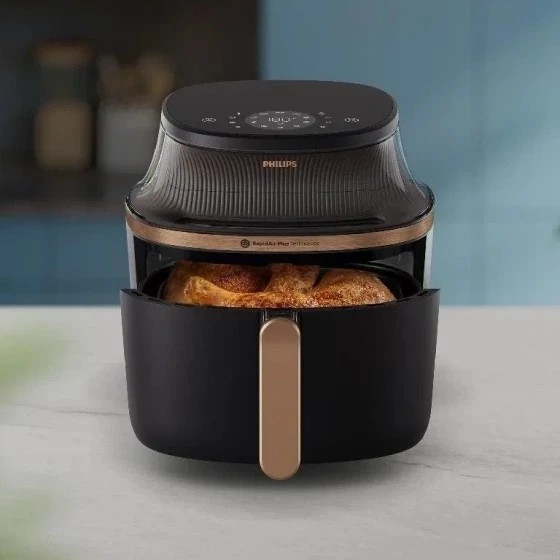 توان 1400W ظرفیت 4.2 لیتر نمایشگر دیجیتال و پنل لمسی مجهز به 16 برنامه پخت فناوری پخت air rapid plus قابلیت مشاهده غذا درحین پخت دارای حالتهای جذاب گریل، تخمیر، یخ زدایی، تست کردن، خورش، تفت دادن، کبابی و… بهینه تر در مصرف انرژی از سریهای قدیمی فیلیپس بسکت تفلون نچسب (متصل به دسته)