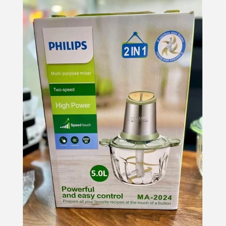 خردکن 5 لیتری فیلیپس- 6 تیغه تیتانیوم طلایی همراه با همزن و کاردک- قدرت 6000W وات- مدل MA2024 کد ۸۱۲۲