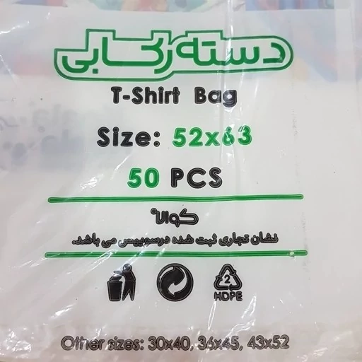کیسه خرید کوالا 63در52 کیسه فروشگاهی بسته 50 عددی دسته رکابی نایلونی کوالا کیسه خرید پلاستیکی کد ۷۹۱۹