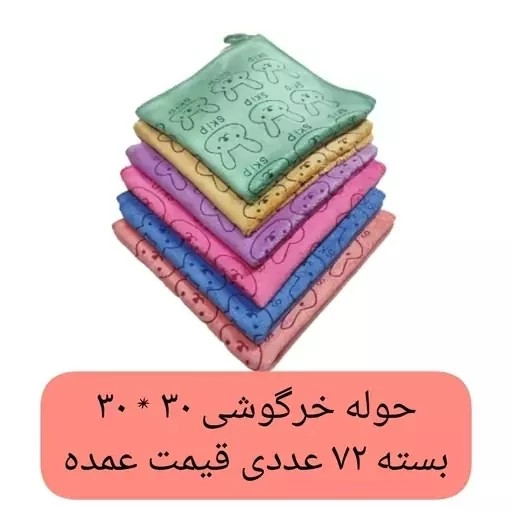 دستمال آشپزخانه 30 سانتی بسته 72 عددی خرگوش حوله دستی دستمال تنظیف میکروفایبر نانو جادویی دستمال کارواش خرگوشی کد ۷۸۷۶