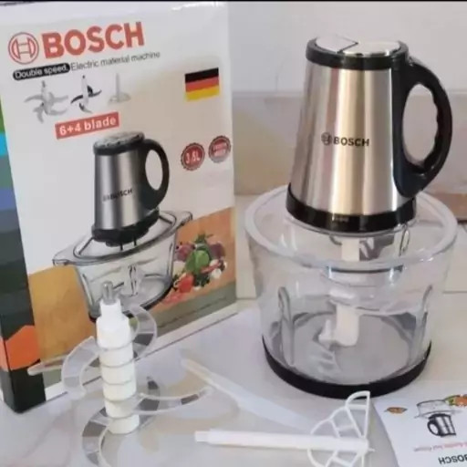 سایر توضیحات:خرد کن مارک بوش از بهترین مواد اولیه با بهترین کیفیت ساخته شده است که یک عمر با خیال راحت با ان کار خواهید کرداین دستگاه دارای دکمه فشاری برای کار کردن دستگاه می باشدو مجهز به سیستم ترموستات است مناسب برای:خرد کردن پیاز ، سبزی ، گوشت ، مرغ ، هویج..... جنس:پیرکس درباره محصول خرد کن 3.5 لیتری مارک بوش ، 3000 وات و دارای یک عدد تیغه شش تایی ، یک عدد تیغه چهار تایی و یک عدد پره ی همزن می باشد
