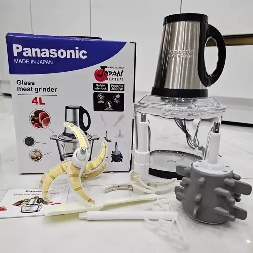 خردکن پاناسونیک 4 لیتری تیغ تیتانیوم6و4 موتور حک شده ژاپن با سیر پاک کن و همزن وقاشق کیفیت عالی کد ۷۵۳۹