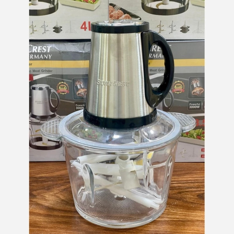 خردکن سیلورکرست اصل المان مدل MD_2024باموتورقدرتمند3000وات و6 تیغه تیتانیومی و 4تیغه استیل ضدزنگ یک ابزارهمه کاره وایده ال برای اشپزخانه شماست.این دستگاه باظرفیت 4لیتر به راحتی میتواند حجم زیادی ازموادغذایی را درکمترین زمان ممکن خرد،ریزویاپوره کند.تیغه های تیزوبرنده این خردکن،برش یکنواخت و ظریفی را برای شمابه ارمغان می اورد. ویژگی های کلیدی: * موتورقدرتمند3000وات: این موتورقدرتمند،خردکردن سخت ترین موادغذایی مانند گوشت،یخ وسبزیجات سفت رانیز به اسانی انجام میدهد. * تیغه ها: تیغه های این خردکن ازجنس تیتانیوم واستیل ضدزنگ هستند که علاوه بر زیبایی طول عمربالایی دارندوبه مرور زمان به هیچ عنوان زنگ نمیرنند. * ظرفیت 3.5 لیتر * پایه های ضدلغزش: این خردکن دارای پایه های ضدلغزش است که از لغزش وحرکت آن درحین کارجلوگیری میکند. * عملکردچندگانه: این دستگاه علاوه برخردکردن،قابلیت پوره کردن ومخلوط کردن انواع موادغذایی را دارد.می توانید از آن برای تهیه انواع سس،اسموتی،سوپ و...استفاده کنید.