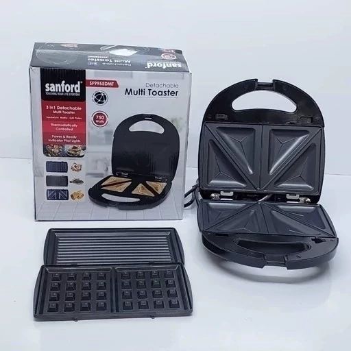 جنس:تفلون درباره محصول توان : 750 وات مولتی توستر جداشدنی 3 در 1. صفحات نچسب قابل جدا شدن. ساندویچ های مثلثی، وافل و گریل. چراغ های پیلوت نشانگر کنترل ترموستاتیک رنگ : مشکی وزن : 1.5 کیلوگرم سایز صفحات : 24 در 24 سانتی متر ارتفاع : 9.8 سانتی متر ساخت : چین