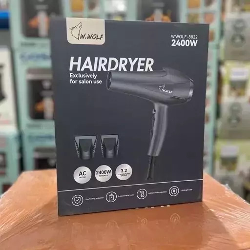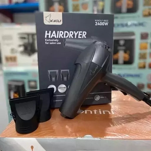 سشوار ولف w.wolf توان 2400 وات باد سرد و گرم سه حالته پرتاب باد سه سرعته بدنه سنگین