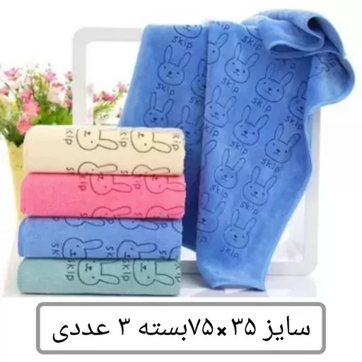 حوله دستی مدل خرگوش 3 عدد سایز 35در75 حوله مسافرتی ورزشی نانو خرگوشی حوله میکرو فایبر 35 در 75 حوله دست صورت کد ۷۳۷۴