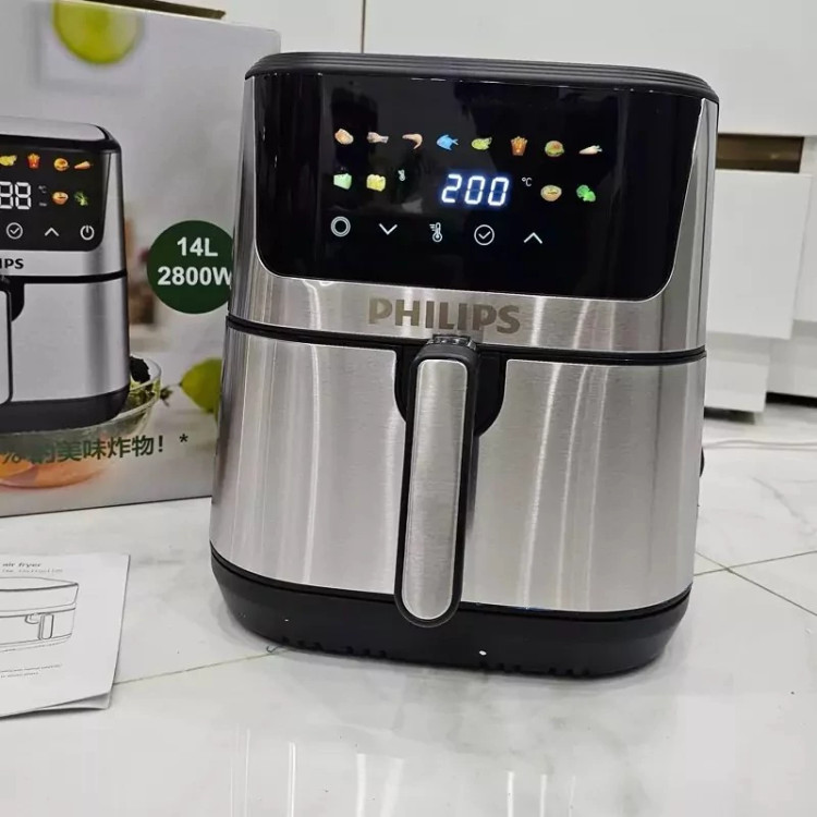 سرخ کن رژیمی دو المنت جدید فیلیپس 14 لیتر ارسال رایگان با 12 برنامه لمسی دیجیتال با طراحی زیبا و ظرفیت2800 وات مدل جدید با طراحی و کیفیت فوق العاده مناسب انواع پخت و پز رزیمی و بدون روغن است و دارای سبد جدا شونده میباشد داخل گالوانیزه تولید جدید شرکت بزرگ فیلیپس با قدرت پخت بالا 2800 وات که اطلاعات مختلف چرخه پخت و پز و سرخ کردن مثل دمای پخت و زمان باقی مانده را نشان می دهد. دارای 8 برنامه پخت و برنامه گرم نگهداشتن غذا است جنس بدنه از استیل و پلاستیک مخصوص است. ظرفیت بالا 14 لیتر و قدرت بالا 2800 وات است. این سرخ کن با ظرفیت بالا، مناسب برای انواع غذاهای لذیذ مانند: مرغ کباب، ماهی کباب، گریل، کیک، بال مرغ سوخاری، نان و کلوچه پخته شده است . سیستم گردش هوای گرم غذای آماده شده را به طور یکنواخت می پزد .دستگاه ما به راحتی تمیز می شود، می توانیم سبد محفظه را در چند لحظه زیر آب جاری بشوییم. علاوه بر این، دستگاه ما دارای یک مخزن به راحتی قابل جابجایی است که چربی از محصولات سرخ شده در زیر آن جریان می یابد. پس از اتمام کار کافیست آن را بیرون بکشید و همچنین زیر آب جاری بشویید. فرقی نمی کند سبزیجات سرخ کنید، سیب زمینی سرخ کرده یا گوشت سرخ کنید، این دستگاه همه کاره پخت همه چیز را به روشی سالم تر ممکن می کند .شکل کانتور سرخ کن و گردش هوای هوا باعث می شود غذاها به طور یکنواخت سرخ شوند.