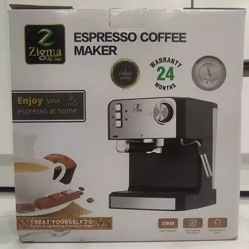 این محصول اسپرسو ساز زیگما مدل KJ60B دارای توان قدرت 850 وات و دارای میزان بار 20 میباشد. جنس بدنه این محصول از ترکیب استیل و پلاستیک مقاوم در برابر ضربه میباشد. مجهز به یک مخزن 1/6 لیتری و دارای نشانگر میزان سطح آب می باشد. موارد استفاده این محصول دارای قابیلیت تهیه اسپرسو و کاپوچینو هست.دیگر ویزگی های این محصول دارای سیستم تنظیم میزان بخار هست. در قسمت جلو این محصول یک سینی تعبیه شده جهت جلوگیری از چکه شدن مواد بر روی دستگاه. ایعاد این محصول به طوری هست که به راحتی بر روی میز آشپزخانه یا در محل کار جاسازی میشود، بدون اشتغال کردن فضای اضافی محیط. دارای ظاهری زیبا و قابیلیت استفاده از پودر قهوه را دارد