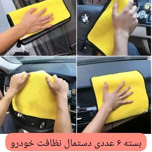 دستمال نظافت خودرو بسته 6 عددی 75 گرمی میکروفایبر ماشین آشپزخانه حوله نانو جادویی مسافرتی کارواش 30در40 کد ۷۰۲۰