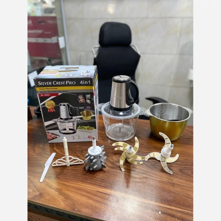 قدرت دستگاه 3000 وات ظرفیت 4+4 لیتر تعداد کاسه 2 عدد تعداد تیغه 6 عدد تیغه تیتانیوم طلایی همراه با 4 عدد تیغه زاپاس جنس کاسه یک عدد کاسه شیشه پیرکس و یک عدد کاسه استیل ضد زنگ اقلام همراه سیر پوست کن و همزن و کاردک سیم پیچ تمام مسی