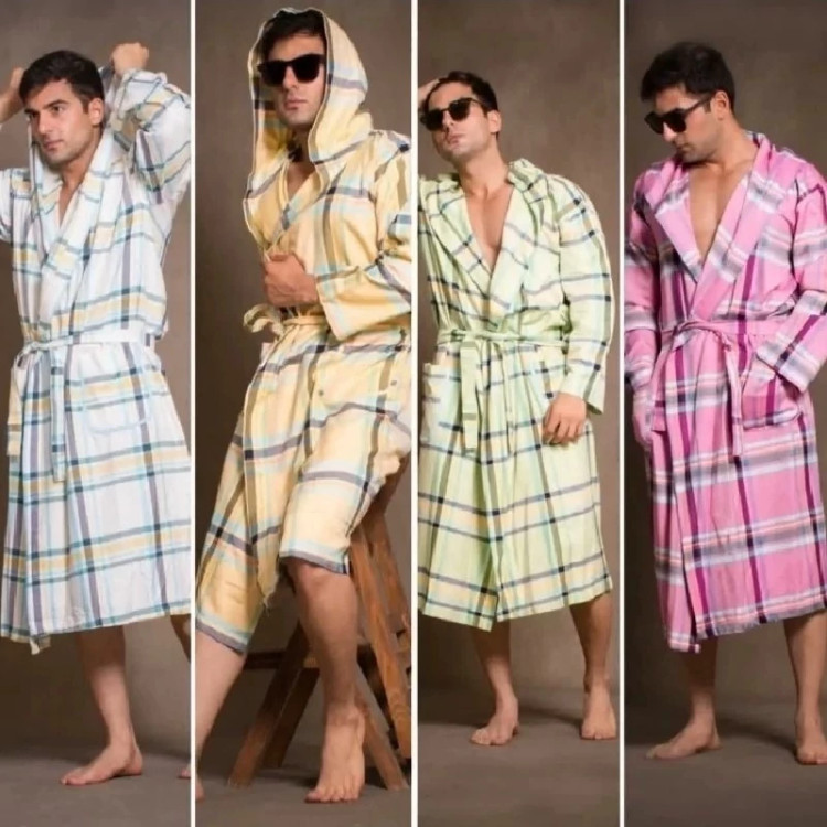 حوله تن پوش ابراهیمی سایز اسمال s حوله یزدی پالتویی نخی جنس 100 درصد نخ حوله تنپوش کد ۶۸۳۱