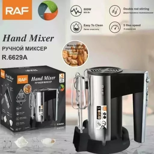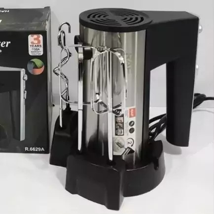 همزن برقی پایه دار استیل مدل : R.6629A محصولی باطراحی فوق العاده زیبا وشیک است. این محصول بامجهز بودن به محفظه ی مخصوص نگهدارنده ازسری ها دارای کاربرد آسان وبامجهز بودن به دوسری قابلیت همزن وخمیر زن رایافته است . نوع همزن:دستی رنگ :استیل مشکی قابلیت تنظیم سرعت 5سرعت قدرت بالا دارای عملکرد توربو جنس تیغه ها:استیل ضدزنگ تعداد پره های همزن:2عدد تعداد پره های خمیرزن:2عدد دارای دکمه جهت خروج تیغه ها