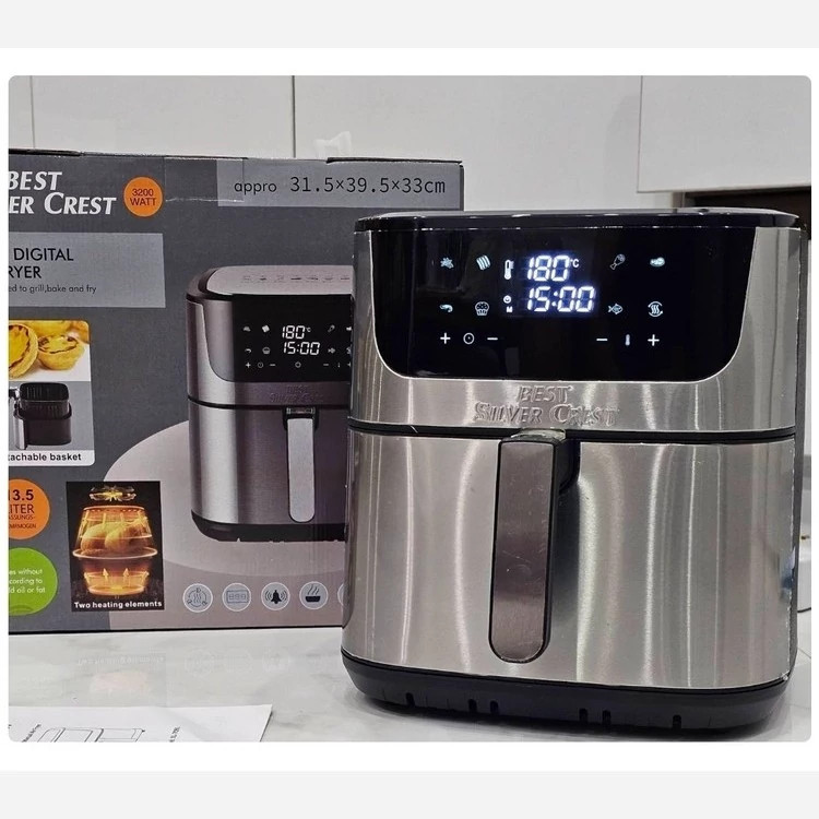 اصالت کالا اصل گنجایش 13/5 لیتر تعداد المنت 2 المنت تولن دستگاه 3200 وات جنس بدنه تمام استیل سبد جداشونده دارد صفحه نمایش تمام لمسی برنامه هوشمند پخت غذا دارد