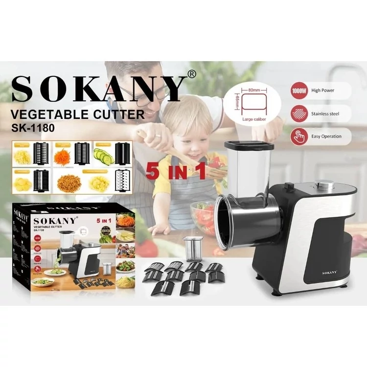 سبزیجات برش برقی Sokany SK-1180 یک دستیار ضروری برای هر خانم خانه دار است. این دستگاه دارای 5 ضمیمه برای خرد کردن و خرد کردن سبزیجات است و به شما این امکان را میدهد که محصولات را به برشها، نوارها و سبزیهای سالاد رنده کنید. خردکن دارای کاسه بارگیری به اندازه کافی بزرگ است که بتواند سبزیجات بزرگ را جابجا کند و قدرت 1000 وات به شما امکان می دهد تا به سرعت مواد جامد را برای ظروف پردازش کنید. برای ساخت عناصر برش سبزیجات از پلاستیک مرغوب و مرغوب استفاده شده است، مواد چسباننده از فولاد ضد زنگ است که با محصولات غذایی واکنش نشان نمی دهد و طعم آنها را تغییر نمی دهد.