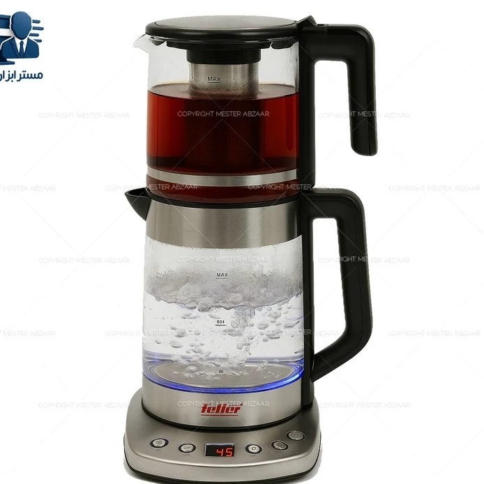 چای ساز دو طبقه 2200 وات 3.7 لیتری دیجیتال فلر آلمان مدل Feller Germany PRO TS-210 روهمی چای ساز فلر مدل 210 یکی از دستگاه های خوش قیمت و با کیفیت موجود در بازار بوده که ما آن را برایتان در مستر ابزار اهواز موجود نموده ایم. به کمک این دستگاه شما می توانید به راحتی در مکان های مختلف اعم از خانه، مغازه، محل کار، شرکت و …. برای خود و همکارانتان چای آماده نمایید. برای اطلاعات بیشتر راجب این دستگاه با ما همراه باشید. معرفی محصول شرکت فلر یکی از کمپانی های معروف در کشور چین بوده که لوازم برقی بسیار با کیفیت به صورت تحت لیسانس آلمان را تولید می نماید. طراحی ظاهری چای ساز های فلر نیز بسیار شیک و مدرن هستند. بدنه ی این دستگاه از شیشه عایق بوده و هارمونی جالبی را با دیگر لوازمتان ایجاد می نماید. قدرت موتور این دستگاه 1850 - 2200 وات بوده و در چشم بر هم زدنی آب و چای را برایتان جوش و دم می آورد. ظرفیت کتری این دستگاه، 2.2 لیتر و حجم قوری آن 1.5 لیتر است. که در مجموع 3.7 لیتر ظرفیت دارد همچنین این دستگاه قابلیت تنظیم دما را در چند سطح مختلف دارد. و در پایان چای ساز فلر مدل 210 بسیار ارزان قیمت، با کیفیت و شیک و مدرن است. در ادامه شما را با مشخصات فنی دستگاه آشنا می سازیم. مشصخصات فنی چای ساز فلر دارای صفحه دیجیتال دکمه ای نام دستگاه: چای ساز نوع دستگاه: روهمی برند: Feller Germany PRO TS-210 منبع تغذیه: برقی کشور سازنده: چین تحت لیسانس آلمان قدرت و توان مصرفی: 1850-2200 وات قابلیت چرخش 360 درجه: دارد نوع گرمایش چای ساز: المنت حرارتی مخفی خاموش شدن خودکار: دارد قطع کن خودکار: دارد جنس فیلتر: استيل ضد زنگ ظرفیت کتری: 2.2 لیتر جنس کتری: شیشه عایق و استیل ضد زنگ کلید روشن و خاموش: دارد محفظه برای جمع كردن سیم برق: دارد جنس قوری: شیشه عایق ظرفیت قوری: 1.5 لیتر امکان: قرار دادن قوری روی کتری آب برای گرم نگه داشته شدن درجه سطح آب: دارد