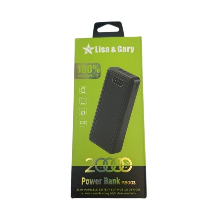 پاور بانک لیزا و گری مدل PB003 ظرفیت 20000 میلی آمپرساعت Lisa and Gray Power Bank Model PB003 Capacity 20000 mAh برند : متفرقه دستهبندی : پاوربانک (شارژر همراه) کلاس وزنی : معمولی|200 تا 400 گرم نحوه نمایش میزان شارژ باتری : نشانگر LED پاور بانک اصلی برند lisa&gary یک محصول عالی و با کیفیت که در سفر و هر جا دیگر شارژ وسایل الکتریکی شما را تامین می نماید این پاوربانک دارای چهار کابل همراه می باشدو همچنین میزان شارژ پاوربانک را به صورت چهار ال ای دی را نشان می دهد و دارای چراغ قوه میباشد این محصول یک پاوربانک برند میباشد و جز پاوربانک های برتر از لحاظ کیفیت میباشد و دیگر نیازی به کابل اضافه ندارید کابل تایپ سی و اندروید و آیفون و یک usb با این پاوربانک میتوانید چند گوشی رو همزمان شارژ کنید و حتی لپ تاپ های که دارای درگاه usb شارژر هستند رو میتوانید شارژ کنید پاوربانک اصلی برند lisa&gary همیشه از رقبای خود پیشی گرفته است و فروش این محصول در بازار به سرعت در حال رشد میباشد میتوانید این پاوربانک از فروشگاه ما تهیه کنید به خاطر عمر بیشتر پاوربانک ها این محصولات فست شارژ نیستند .