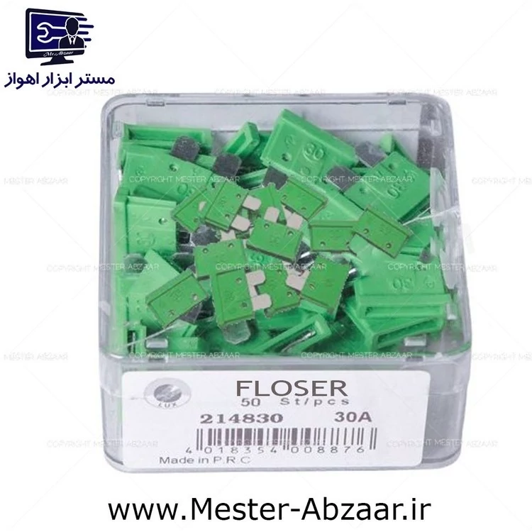 فیوز 30 آمپر لیسانس آلمان سبز کدر ماشین خودرو ایرانی پراید کوییک تیبا برند فلوزر مدل FLOSER 30A کد ۵۷۳۹