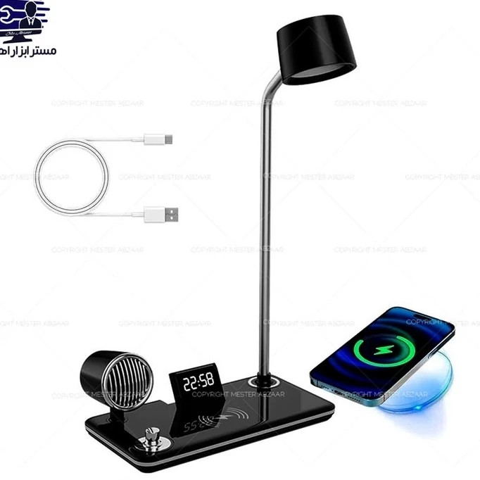 شارژر وایرلس اسپیکر دار و چراغ مطالعه مدل bt speaker 4 in 1 کد ۵۶۱۳