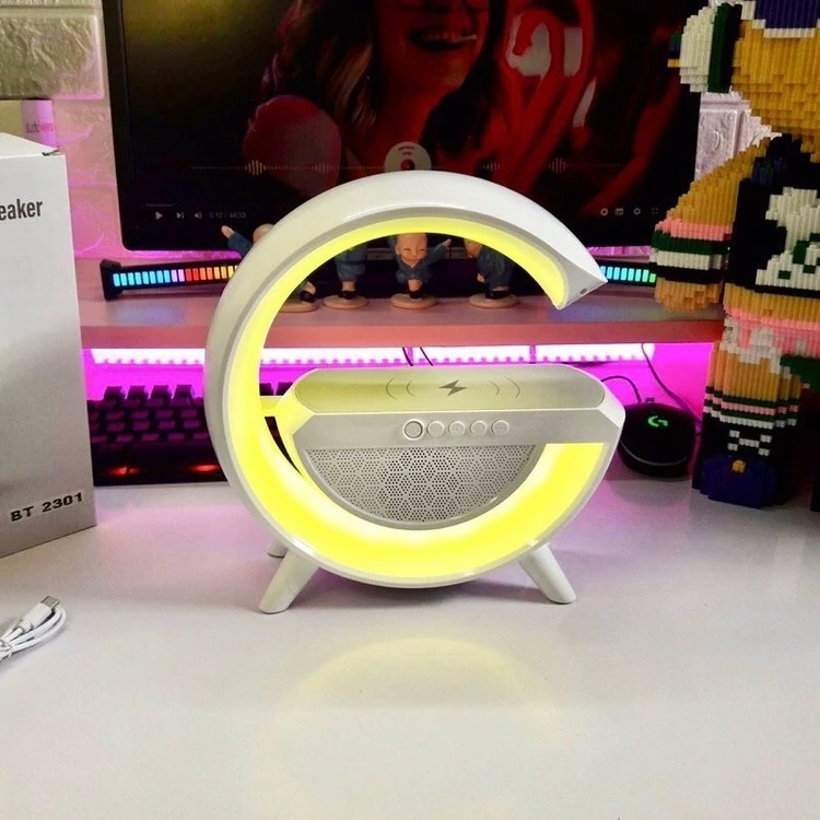 شارژر بی سیم و چراغ رومیزی اسپیکر دار BT-2301 15W. BT-2301 15W wireless charger and desk lamp with speaker دستهبندی : اسپیکر (بلندگو) دستگاه چندکاره مدل BT-2301 یک اسپیکر بلوتوثی و شارژر وایرلس به همراه نورپردازی است . این اسپیکر و لامپ چند کاره همچنین دارای شارژر بی سیم است که به شما اجازه میدهد تا تلفن همراه خود را بدون نیاز به کابل شارژ کنید. با طراحی G-Shape، این شارژر بی سیم راحتتر و ثابتتر بر روی میز و دیگر سطوح قرار میگیرد. این اسپیکر RGB همچنین دارای قابلیت اتصال به آهنگ ها و موسیقی است که به شما اجازه میدهد تا به صورت بی سیم از آهنگ های خود لذت ببرید. همچنین، با استفاده از ویژگیهای خاص این لامپ، میتوانید الگوهای نوری مختلف را انتخاب کنید و اجازه دهید که این لامپ به یک لامپ آرامبخش تبدیل شود. به طور کلی اسپیکر و شب خواب مدل RGB BT2301 یک محصول خاص و کارآمد است که میتواند به عنوان یک لامپ خواب، شارژر بی سیم و بلندگوی بلوتوث برای تلفن همراه شما