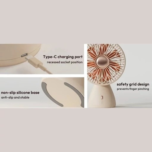 ## مینی پنکه قابل حمل شارژی Bridal bouquet مدل 2113A ؛ همراهی هوشمند در همه فصول تحمل گرما در هر شرایطی سخت و آزاردهنده است ؛ البته خنک ماندن و پیشگیری از گرمازدگی کار مشکلی نیست، به شرط آن که وسایل سرمایشی مناسب برای هر محیط و در هرجایی وجود داشته باشد. در گرمای تابستان علاوه بر کولر و سایر وسایل خنک کننده، هیچ چیز به اندازه یک باد خنک و مستقیم چهره ی شما را شاداب و خنک نمیکند! هنگامی که میخواهید روز خود را شروع کنید، یا زمانی که در محل کارتان سرگرم کار و فعالیت هستید، پنکه رومیزی شارژی قابل حمل 2113A با رنگ جذاب کرم رزگلد متناسب با هر سلیقهای می باشد. ### سبک و جمع و جور این پنکه دستی قابل حمل از مواد سبک وزن ساخته شده است که بسیار سبک و حمل آن برای شما راحت است. چه در کیف قرار گیرد و چه در دست، مینی پنکه جیبی برای کاربران مشکلی ایجاد نمیکند. میتوانید به راحتی آن را در جیب، کوله پشتی یا کیف دستی خود قرار دهید و از نسیم خنک در هر زمان و هر مکان لذت ببرید. چه برای سفر، فعالیتهای خارج از منزل یا استفاده در منزل، SOTHING میتواند راهحلهای خنککننده مناسبی را برای شما فراهم کند. ### بال بیومیمتیک 7 پره طراحی بال بیومیمتیک 7 پره که با پرههای سبک از پلی پروپلین PP ساخته شده است، جریان هوا را به طور یکنواختتری کاهش میدهد و با تقلید از نسیم طبیعی مزارع باز، خروجی هوای سریع و طبیعی را فراهم میکند. ...