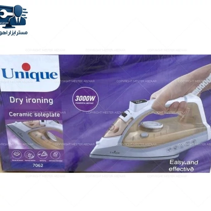 اتو بخار کف سرامیکی 3000 وات برقی خانگی یونیک کد 7062 برند Unique اتو بخار یونیک کد 7062 یکی از پیشرفتهترین و کارآمدترین اتوهای بخار موجود در بازار است که با طراحی منحصر به فرد و عملکرد بالا، تجربهای بینظیر از اتوکشی را برای کاربران فراهم میکند. این اتو با ویژگیهای متعدد خود، بهترین انتخاب برای کسانی است که به دنبال راحتی و کارایی در اتوکشی هستند. ویژگیها و مشخصات: – قدرت بالا: اتو بخار با توان 3000 وات، حرارت لازم را برای از بین بردن چین و چروکهای عمیق لباسها فراهم میکند. – بخاردهی قوی و مداوم:با قابلیت بخاردهی مداوم 35 گرم در دقیقه و بخاردهی لحظهای 100 گرم در دقیقه، این اتو به راحتی چین و چروکهای سخت و سرسخت را از بین میبرد. – کفی سرامیکی: کفی سرامیکی این اتو باعث پخش یکنواخت حرارت و حرکت روان روی پارچهها میشود و از چسبیدن و سوختگی لباسها جلوگیری میکند. – سیستم ضد چکه: این سیستم از نشت آب در هنگام اتوکشی جلوگیری میکند و از لکهدار شدن لباسها ممانعت میکند. – مخزن آب با ظرفیت مناسب: مخزن آب 300 میلیلیتری این اتو امکان اتوکشی طولانی مدت بدون نیاز به پر کردن مکرر را فراهم میکند. – تنظیمات متنوع: با تنظیمات مختلف بخار و دما، اتو بخار برای انواع مختلف پارچهها مناسب است و عملکرد بهینهای را ارائه میدهد. – سیستم خاموشی خودکار:برای افزایش ایمنی، این اتو به سیستم خاموشی خودکار مجهز است که در صورت عدم استفاده، اتو را به طور خودکار خاموش میکند. اتو بخار با ترکیب قدرت، کارایی و طراحی هوشمندانه، انتخابی ایدهآل برای هر خانهای است. با ویژگیهای منحصر به فردی مانند کفی سرامیکی، بخاردهی قوی و سیستم ضد چکه، این اتو تمامی نیازهای شما را در زمینه اتوکشی برآورده میکند و تجربهای بینظیر از لباسهای بدون چین و چروک را به شما هدیه میدهد. همین حالا این اتوی با کیفیت و پرکاربرد را تهیه کنید و از اتوکشی آسان و سریع لذت ببرید. ساخت چین