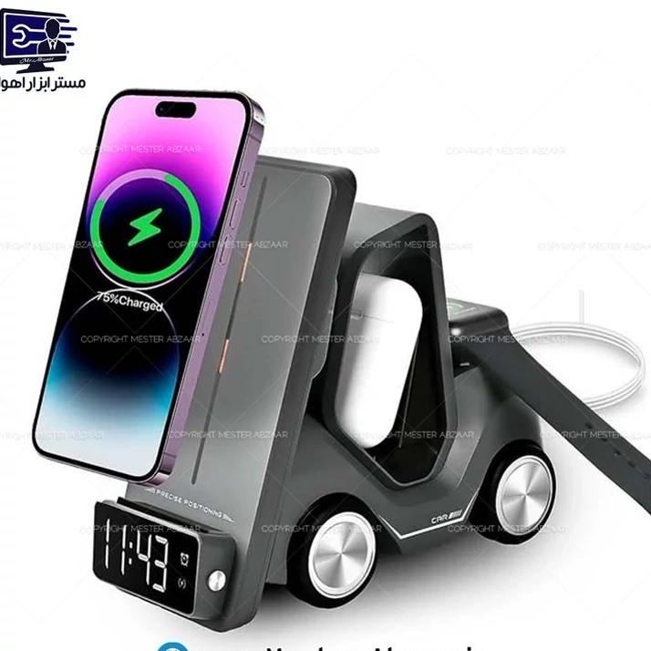 شارژر رومیزی وایرلس هوشمند بیسیم 5 کاره برند اسمارت دسکتاپ مدل SMART DESKTOP T20 موبایل ساعت ایرپاد چراغ طبیعتا برای شما هم پیش اومده که همزمان شارژ گوشی موبایلتان،اپل واچتان و ایرپادتان باهم خالی شده باشد یا عجله داشته باشین و وقت نداشته باشین که گوشی موبایلتان،اپل واچتان و ایرپادتان را به صورت جداگونه برای شارژ قرار بدهید.در این صورت این محصولی که درحال مشاهده آن هستید بهترین گزینه برای شما میباشد.تا الان گجت های زیادی برای گوشی موبایلتان،اپل واچتان و ایرپادتان معرفی شده ولی ترکیب گجتهای مختلف با یکدیگر و ساخت ابزارهای جدید،میتواند نتیجه هیجانانگیز و جذابی داشته باشد؛مخصوصاً وقتی محصول نهایی،کاربردهای جدید و تازهای داشته باشد و پاسخگوی نیاز کاربران باشد.با کابلهای نامرتب خداحافظی کنید . پایه نگهدارنده و شارژر بی سیم گوشی موبایل T20 هم یکی از همین گجتها است.این محصول،ساختار بسیار جالب و منحصر به فردی دارد.پایه نگهدارنده و شارژر بی سیم گوشی موبایل مدل T20 دارای 5 قابلیت جذاب میباشد:-شارژر بیسیم گوشی موبایل.(ظرفیت شارژ 15 وات برای گوشی هوشمند).2-شارژر بیسیم ساعت هوشمند ,وایرلس.(ظرفیت شارژ 2.5 وات برای ساعت هوشمند).3-شارژ بیسیم انواع Airpods(ظرفیت شارژ 5 وات برای هدفون).4-ساعت دیجیتال 5-چراغ خواب طرح چراغ عقب ماشین . پایه نگهدارنده و شارژر بی سیم گوشی موبایل T20 بر خلاف بقیه پایه نگهدارنده ها این قابلیت این را دارد که از این پنج ویژگی به طور همزمان استفاده کنید.اما این همه ماجرا نیست! طراحی منحصربهفرد به شکل لیفتراک، جذابیت خاصی را به هر فضایی اضافه میکند و آن را به فضایی چشم نواز برای خانه یا محل کار شما تبدیل میکند.با تهیه پایه نگهدارنده و شارژر بی سیم گوشی موبایل T20 دیگر خبری از کابل های درهم نیست . در حالی که نور شب یکپارچه محیطی آرامش بخش ایجاد می کند. با شلوغی ها خداحافظی کنید و از کارایی و ظرافت پایه نگهدارنده و شارژر بی سیم گوشی موبایل T20 لذت ببرید.برای استفاده از پایه نگهدارنده و شارژر بی سیم گوشی موبایل T20 کافیست کابل Usb-C را به استند متصل کنید و از پایه نگهدارنده و شارژر بی سیم گوشی موبایل T20 لذت ببرید.
