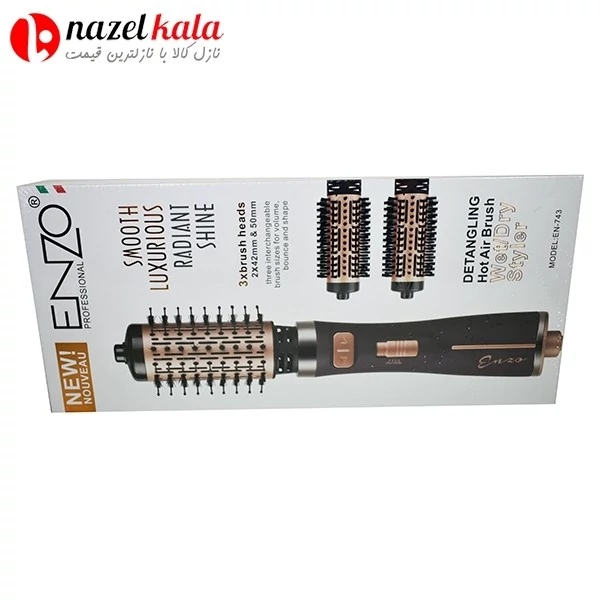 سشوار چرخشی انزو مدل EN-743 ویژگی های محصول رضایتمندی:⭐⭐⭐⭐⭐ توان 1500 وات موتور DC فناوری تولید یون دکمه کول شات (باد سرد) دو سری برس حرارتی چرخش دوطرفه برس طراحی ارگونومیک مناسب مصرف خانگی و نیمهحرفهای طول سیم 1.5 متر وزن دستگاه 700 گرم همراه با دفترچه راهنما