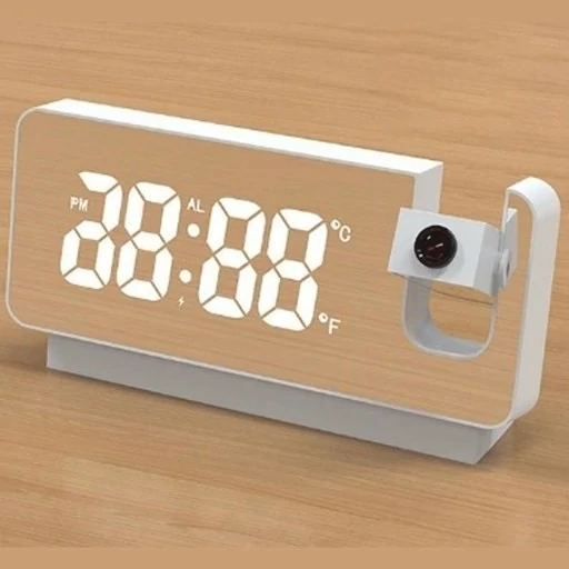ساعت دیجیتال پروژکتوری آینهای رومیزی S28 ## ساعت زنگدار دیجیتال پروژکتوری مدل S282 - تکنولوژی مدرن برای شبهای آرام چقدر برای شما مهم است که هنگام بیدار شدن شبانه بتوانید به راحتی زمان را ببینید بدون آنکه چراغ را روشن کنید یا گوشی را بردارید؟ ساعت زنگدار پروژکتوری S282A این نیاز را به بهترین شکل ممکن برطرف کرده است. این ساعت دیجیتال با امکانات پیشرفته و طراحی کاربرپسند، راهکاری منحصر به فرد برای مدیریت زمان و بهبود کیفیت خواب است. با قابلیتهای متعدد این ساعت، دیگر نگرانی بابت دیدن ساعت در تاریکی نخواهید داشت. ### نمایش پروژکتوری قابل تنظیم قابلیت منحصر به فرد ساعت زنگدار S282A، پروژکتور 180 درجه قابل تنظیم آن است. شما میتوانید زمان را روی سقف یا دیوار با زاویه دلخواه خود نمایش دهید، بدون اینکه نیاز به حرکت یا بلند شدن داشته باشید. این ویژگی، تماشای ساعت را حتی در تاریکی کامل امکانپذیر میکند و برای خواب آرام و بدون مزاحمت ایدهآل است. ### صفحه نمایش LED با وضوح بالا و تنظیم روشنایی صفحه نمایش دیجیتال LED ساعت رومیزی، زمان را با وضوح بالا و به صورت دیجیتال نشان میدهد. این صفحه قابلیت تنظیم روشنایی دارد و میتوانید بین حالت 12 یا 24 ساعته انتخاب کنید. حتی در محیطهای کم نور هم میتوانید به راحتی اطلاعات روی صفحه را مشاهده کنید. ### نمایش همزمان تاریخ، دما و ساعت این ساعت LED علاوه بر نمایش ساعت، به صورت همزمان تاریخ و دمای محیط را نیز نمایش میدهد. ...