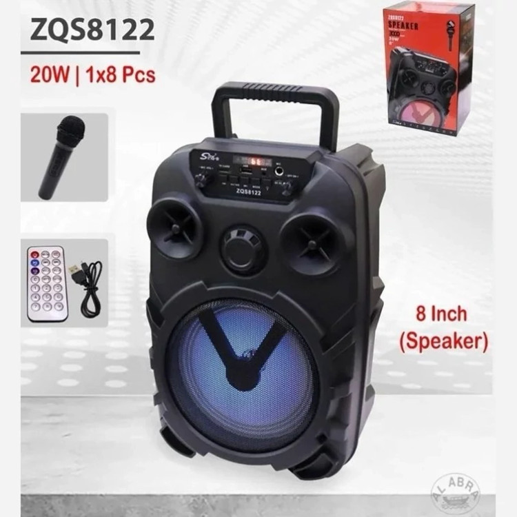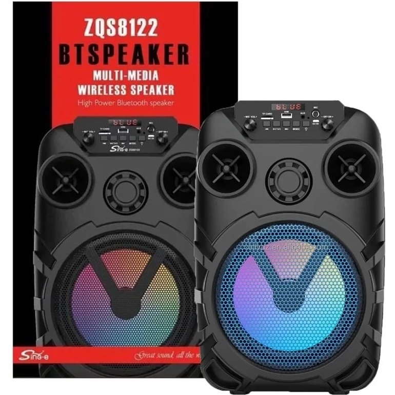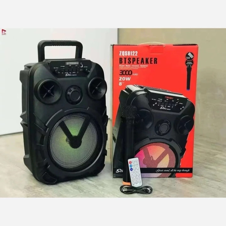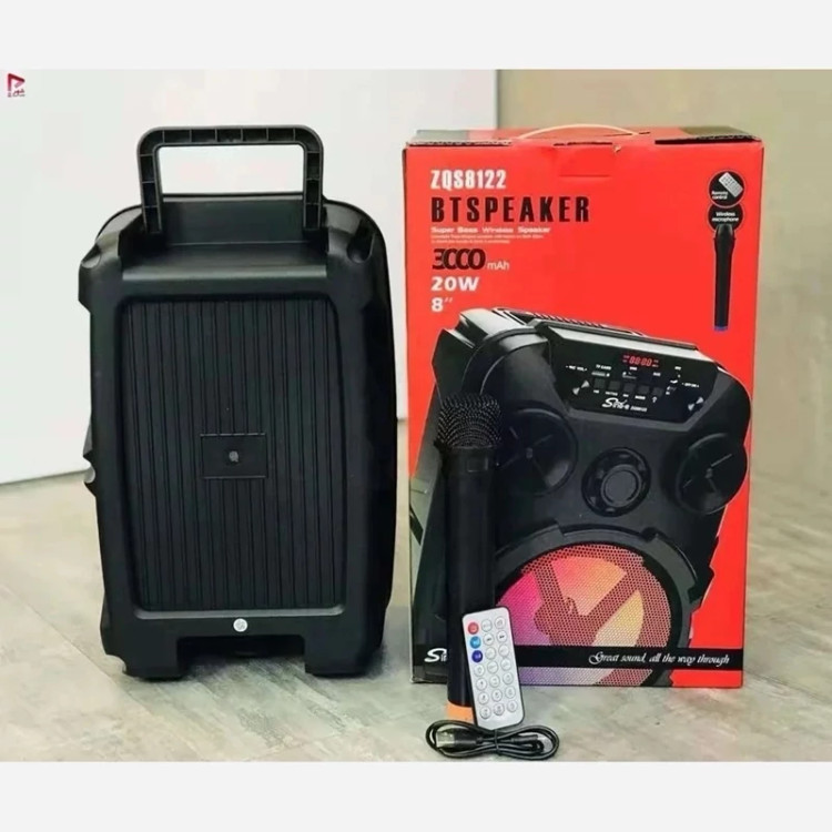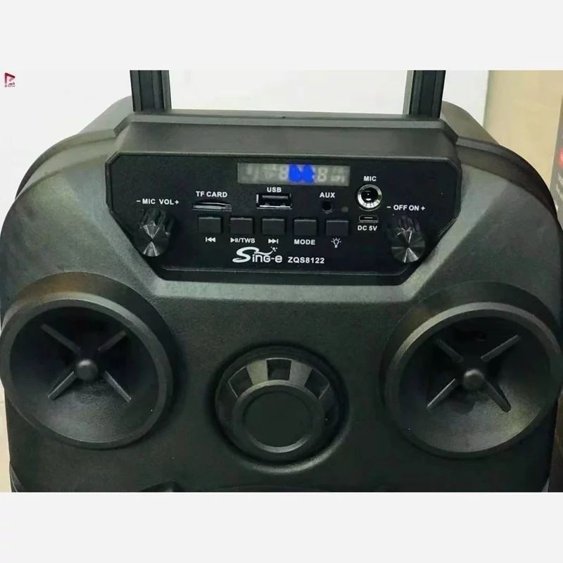 ارتفاع : 35 سانتی متر سایز ساب ووفر : 8 اینچ رقص نور با قابلیت تغییر : دارد دستگیره قابل حمل : دارد باتری : 3000 میلی آمپر ساعت ورودی ها : AUX/USB/TF CARD اقلام همراه : میکروفون بیسیم/ریموت/کابل شارژ تنظیمات : بیس/اکو/تریبل