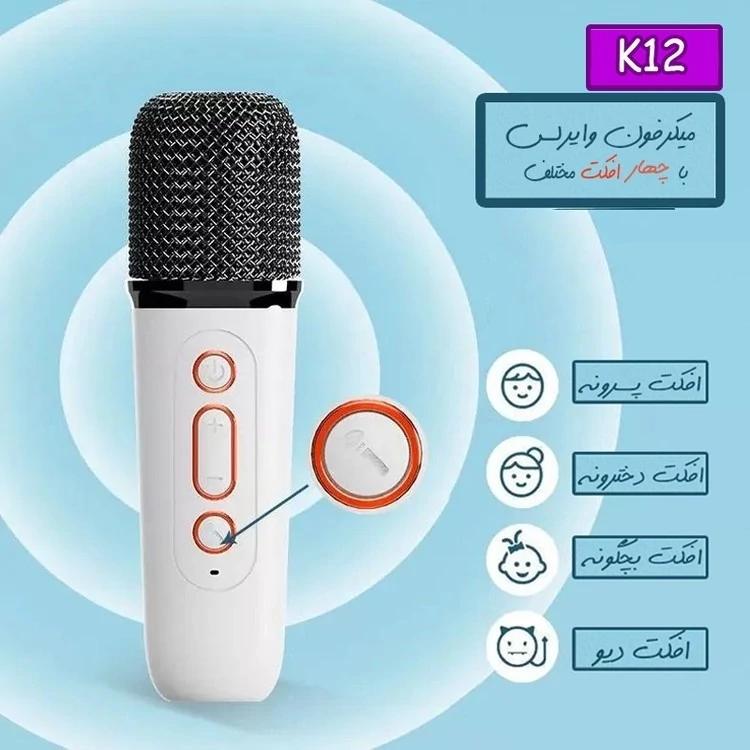 اسپیکر بلوتوثی قابل حمل مدل K12 دو میکروفون K12 portable bluetooth speaker with two microphones برند : متفرقه دستهبندی : اسپیکر (بلندگو) ویژگیهای محصول رنگ آبی صورتی کرم وزن : 400 گرم نوع اتصال : با سیم , دانگل USB , بلوتوث قابلیت پشتیبانی از کارتهای حافظه : دارد تعداد اجزاء اسپیکر : 1 عدد اقلام همراه بلندگو : کابل شارژ-میکروفون وایرلس(بیسیم) توان خروجی اسپیکر : 5W حداکثر برد بلندگو : 60 متر نسخهی بلوتوث : 5 وزن هر ستلایت (تکه) : 200 گرم منبع انرژی : باتری سایر مشخصات : دارای میکروفون افکت دار شارژی با ورودی USB-C رابطها : شیار کارت حافظه , USB , Bluetooth , AUX قابلیت پشتیبانی از کارت حافظه تا ظرفیت : 16 گیگابایت قابلیتهای اسپیکر : ورودی کارت حافظه تعداد اجزاء سابووفر : 1 عدد ابعاد : 80x80x90 میلیمتر