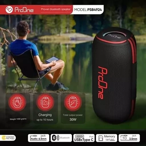 # اسپیکر بیسیم قابل حمل پرووان مدل PSB4924 یکی از تجهیزات لذت بردن از مهمانیها، مسافرت، کمپها و حتی سر کردن در تنهایی خود داشتن یک اسپیکر است که چه بهتر این ابزار از نوع اسپیکر بلوتوثی باشد تا محدودیتی در استفاده از آن در شرایط و مکانهای مختلف نباشد. اسپیکر بی سیم شارژی پرووان PSB4924 میتواند یکی از گزینههای خوب برای انتخاب باشد؛ چون با داشتن دو بلندگوی بزرگ 78 میلی متری، خروجی بلندگوی 30 وات و امپدانس 4 اهم صدایی واضح را در اختیارتان قرار میدهد. ### طراحی ظاهری اسپیکر بلوتوث پرووان به صورت استوانهای طراحی شده و فضای کمی از میز را اشغال میکند؛ ابعاد آن 97*97*225 میلیمتر است و وزنی برابر با 1090 گرم دارد و ساختار آن را پلاستیک ABS تشکیل داده و در برابر ضربه و آسیب بسیار مقاوم عمل میکند. روی بدنه آن تعدادی کلید هم وجود دارد که برای کنترل موزیک یا خاموش و روشن کردن آن کاربرد دارند. برای حمل راحتتر هم یک بند برای آن در نظر گرفته شده است. ### ضدآب یکی از ویژگیهای بسیار دوستداشتنی این محصول پرووان مقاوم بودن آن در برابر نفوذ آب است؛ استاندارد ضد آب IPX6 به آن تعلق گرفته و زیر باران نگرانی بابت خراب شدن دستگاه نخواهید داشت. مقاومت این محصول در برابر نفوذ آب در حد اسپری شدید آب است. ### اتصالی بسیار سریع و راحت فناوری بی سیم اتصالی بدون دغدغه را برایتان فراهم میکند و بلوتوث با نسخه 5.3 برای آن در نظر گرفته شده است. ...