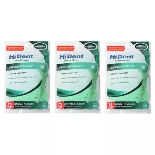 نخ دندان کمانی های دنت 3 بسته 75 عددی کد 902نخ دندان هایدنت کمانی دسته دار همراه خلال دندان بسته 75 عددی