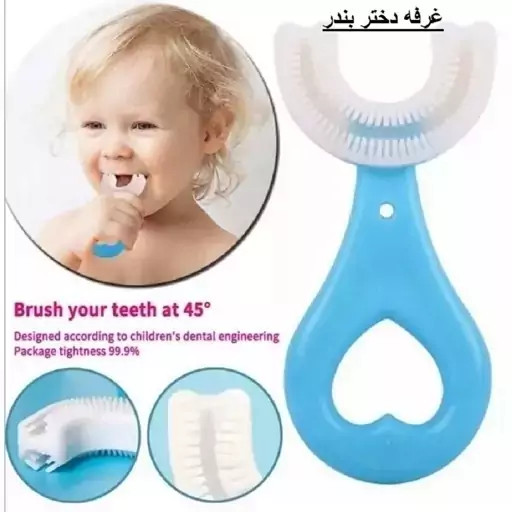 ساختار سیلیکونی یو شکل: ساختار منحصر به فرد سیلیکونی این مسواک، مناسب با دندان و لثه کودکان بوده و با چهار ردیف فرچه برای تمیز کردن قسمتهای کناری و بین دندانها بکار میرود.