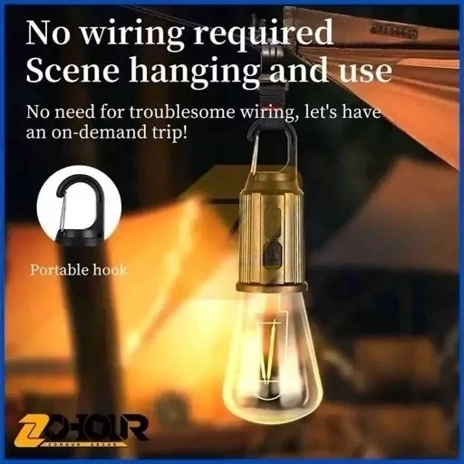 لامپ شارژی کمپینگ فیلامنتی برای کمپینگ، کوهنوردی، تعمیر ماشین، مواقع اضطراری و... قابلیت شارژ با کابل تایپ C