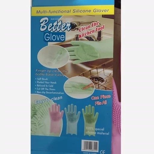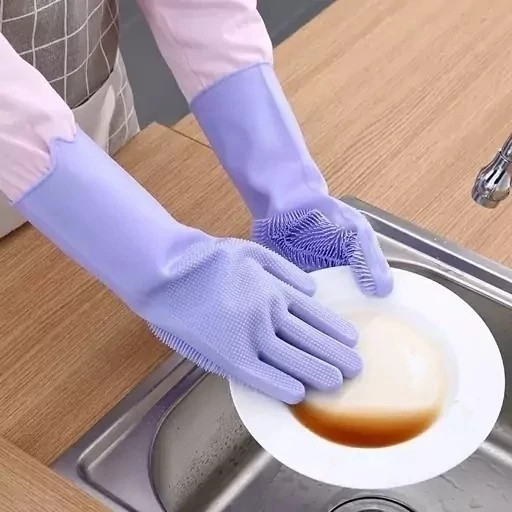 دستکش سیلیکونی پرزدار ( سایز بزرگ یک جفت وارداتی) دستکش سیلیکونی ظرفشویی دستکش