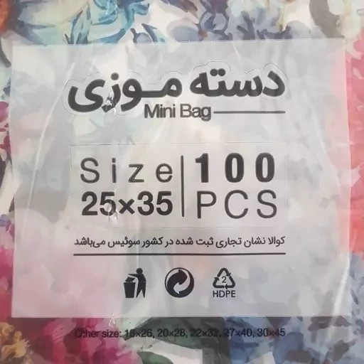 کیسه خرید کوالا 35 در 25 کیسه فروشگاهی بسته 100 عددی کیسه خرید دسته موزی نایلونی کوالا پلاستیکی عمده فروشی