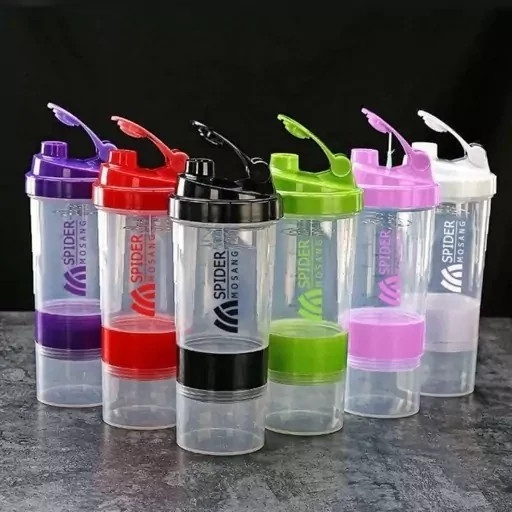 شیکر قمقمه اسپایدر مدل سه تکه ظرفیت 0.5 لیتر شیکر بدنسازی ورزشکاران